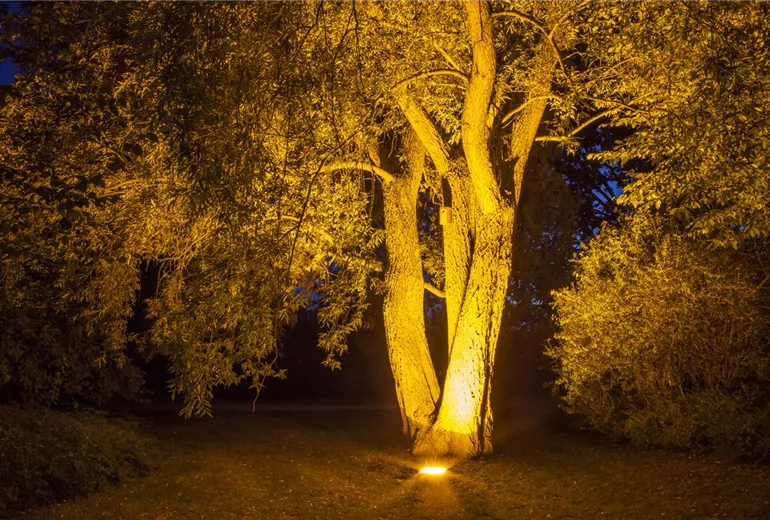 Alternativ dazu eigenen sich auch Solarlichter für den weihnachtlich geschmückten Garten. Sie verfügen bereits über einen eingebauten Dämmerungssensor und schalten sich automatisch ein und wieder aus. Zudem haben die Solarlämpchen den Vorteil, dass sie unabhängig von einer Steckdose betrieben werden können. Damit lässt sich auch das Tannenbäumchen mitten im Garten ohne ellenlange Kabel zum Christbaum illuminieren. Nett sind zudem auch leuchtende Blüten-Lichterketten, mit denen sich laublose Gehölze im winterlichen Garten dekorieren lassen.