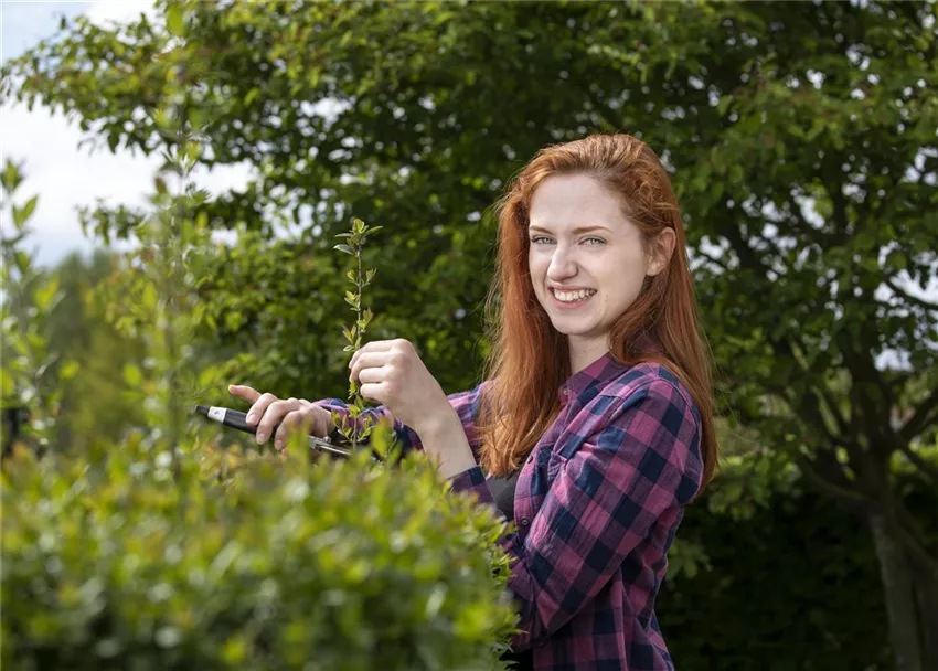 Für den Heckenschnitt kommen im Garten überwiegend Scheren mit Akku- oder Elektrobetrieb zum Einsatz. Hier gilt es Vorsicht zu wahren, denn die Messer entwickeln oft eine enorme Schneidkraft. Schnell lassen sich so schon einmal Kabel und Zaundrähte durchtrennen. Insbesondere Geräte mit Nachlaufzeit sind gefährlich. Deshalb sind vor allem Finger und Hände, aber auch die Beine zu schützen.