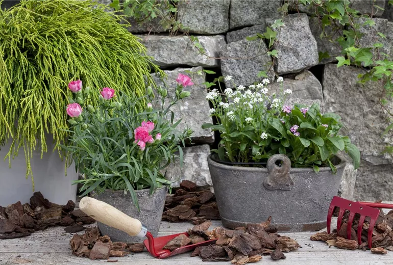 Ein einfacher Lattenzaun wird schon belebt, wenn man ihn beispielsweise mit Sonnenblumen, Wildrosen oder Mönchspfeffer unterpflanzt. Nun noch ein paar Zaunhocker aus Metall oder Keramik daraufgesetzt, und schon schaut man statt auf einen schlichten Zaun auf eine liebevolle, ansprechende Gartenkonstruktion. Hat man Holzbalken im Querformat, wirken Vergissmeinnicht in Verbindung mit Tulpen wahre Wunder. Scheuen Sie nicht davor zurück, bei solchen Arrangements auch einmal zu Weiß zu greifen. Anemonen und Narzissen in Weiß erzeugen eine klare, freundliche Atmosphäre und können mit vielen Farben zusammenspielen. Eine Ziegelsteinmauer in warmen Tönen lässt keinen Wunsch offen. Ob man hier Ton in Ton mit zarten Farben arbeitet oder temperamentvolle Kontraste in kräftigem Blau oder sattem Gelb setzt, bleibt dem Stil und Geschmack des kreativen Gartenbesitzers überlassen. Traumhaft vor jeder Art von Zaun sind die zarten, aber auffälligen Astilben. Ruhig in Massen und verschiedenen Farben pflanzen!