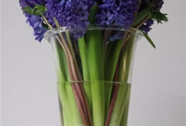 Über den sogenannten Wurzeldruck gelangt das in die Wurzelzellen aufgenommene Wasser in die Wasserleitungsgefäße. Welche Kräfte dabei in einer Pflanze wirksam werden, können Sie im Frühjahr beobachten, wenn Sie eine Weinrebe oder den Ast einer Birke schneiden: Aus den Schnittwunden tritt für längere Zeit Flüssigkeit aus. Wassermoleküle hängen dich aneinander und sorgen so dafür, dass der „Wasserfaden“ im Innern des Stamms oder Stängels nicht abreißt. Über die Blätter verdunstet das Wasser wieder, und so entsteht wie bei einem Strohhalm, aus dem getrunken wird, ein Sog, der ständig Wasser in die Spitzen transportiert. Wird die Pflanze von ihrem Wurzelstock getrennt, reißt dieser wasserfaden ab. Nach einiger Zeit im Trockenen fängt die Pflanze an zu welken. Kommt der Stängel rechtzeitig wieder ins Wasser, kann der Transport-Kreislauf fortgesetzt werden. Allerdings besteht die Gefahr, dass sich zwischenzeitlich Luft in den Leitungsbahnen gesammelt hat. Dies erschwert die Wasseraufnahme und macht einen frischen Anschnitt nötig. Die Luft wird so eliminiert, der Wasserfaden schließt sich wieder, und der Blütenstängel steht aufrecht in der Vase.