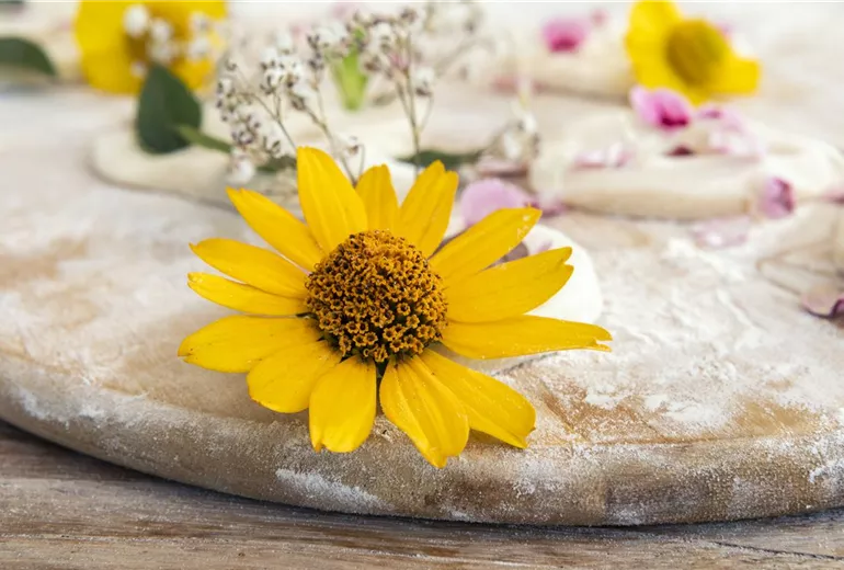 Hübsche Blüten und Salzteig passen super zusammen, weil sich damit hübsche Anhänger gestalten lassen, die den Sommer auch an die kahlsten Stellen im Garten bringen. Dafür braucht es nur Mehl, Wasser, Salz und viele verschiedene Sommerblüten.
