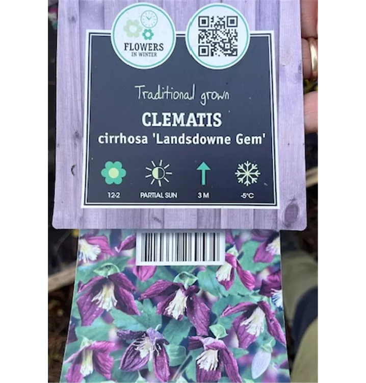 Die Clematis der cirrhosa-Gruppe sind alle winterblühend!! und teilimmergrün. Bedeutet, sie haben nicht die ganz volle Blattmasse wie im Sommer, aber sie sind belaubt. An einem sonnigen bis halbschattigen Standort mit durchlässigem, humosem, lockerem Boden erreicht sie gewöhnlich eine Höhe von ca. 3 m und wird ca. 2 m breit.