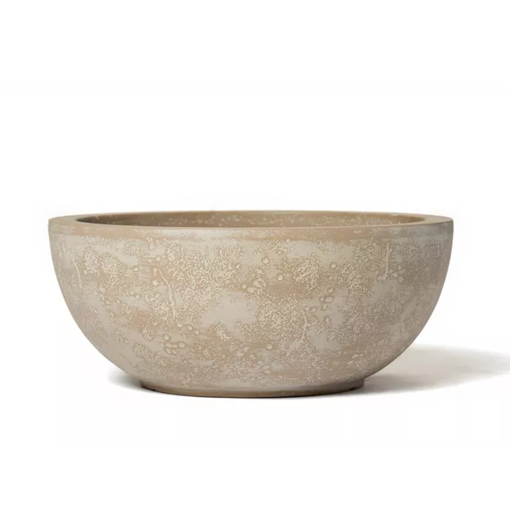Wunderschöne Fiberglasgefäße mit einer Oberfläche, die die Struktur von Travertingestein wunderbar nachbildet.