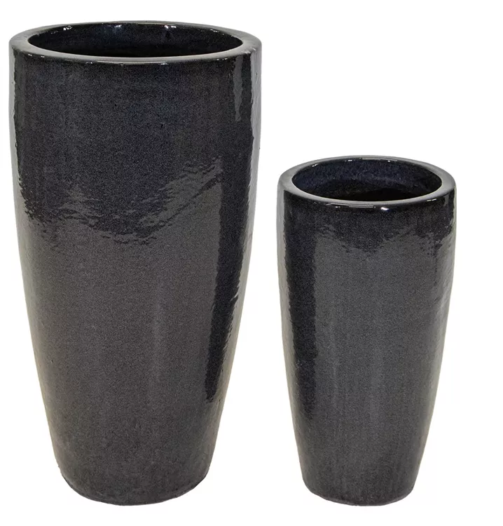 Terracottavase mit glasierter Oberfläche in klassischer Form.