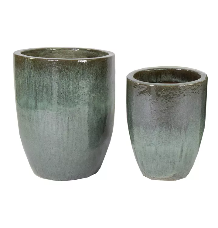 Terracottavase mit glasierter Oberfläche in klassischer Form.
