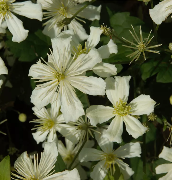 Die Immergrüne Waldrebe (Clematis armandii) ist eine immergrüne Pflanze, die weiße Blüten mit einem starken Duft hervorbringt. Sie erscheinen von März bis Mai. Zudem trägt die Immergrüne Waldrebe, glänzende, lanzettliche, grüne Blätter. An einem sonnigen bis halbschattigen Standort mit durchlässigem, humosem, lockerem Boden erreicht sie gewöhnlich eine Höhe von ca. 5 m und wird ca. 1 m breit.