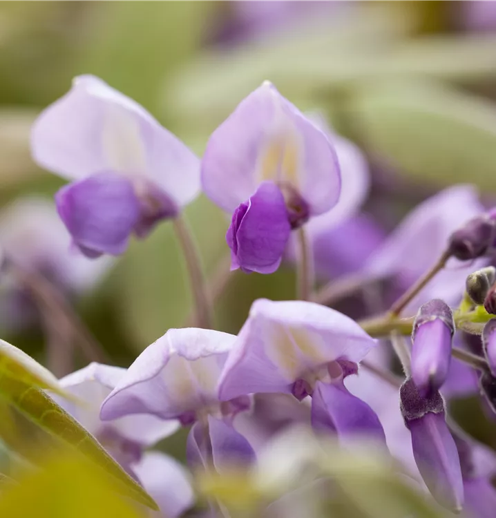 Die blauvioletten Blüten des Chinesischen Blauregen 'Prolific' erscheinen in Trauben von Mai bis Juni. Diese sind angenehm duftend.