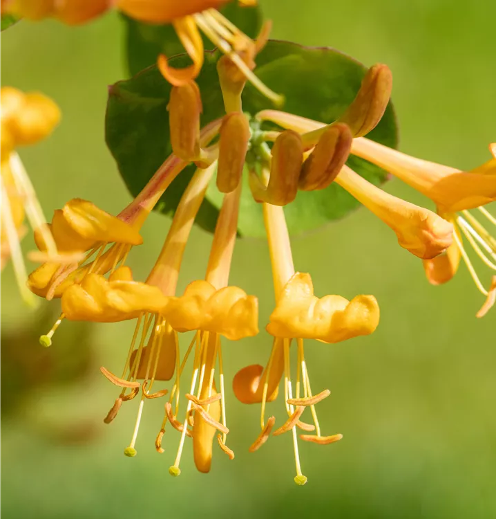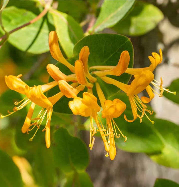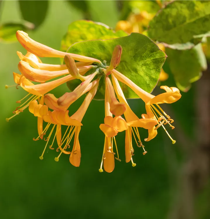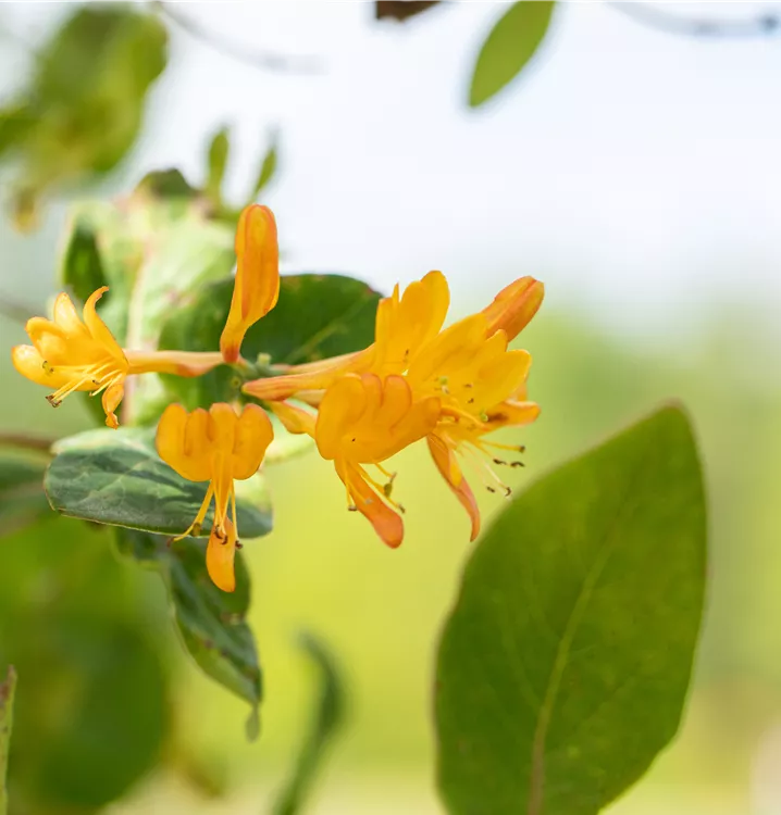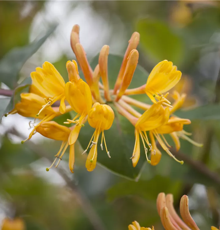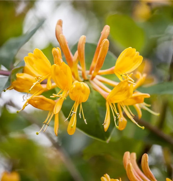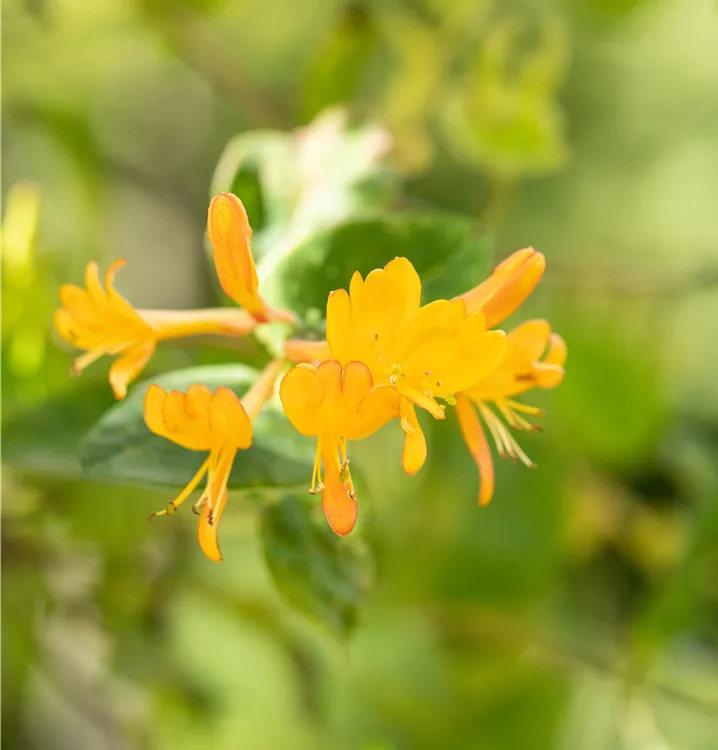 Die orangegelben, röhrenförmigen Blüten erscheinen in Quirlen angeordnet von Mai bis Juli. Sie duften angenehm.
